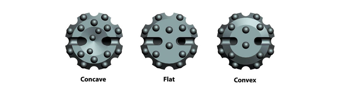 We offer to the user three bits designs : Flat Face, Convex and Concave. These are designed for specific applications for all rock types.